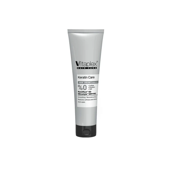 کرم مو مناسب موهای کراتینه بدون نیاز به آبکشی-KERATIN HAIR CREAM از برند ویتاپلکس با حجم "150 میل" فاقد سولفات و پارابن بوده و برای موهای کراتین شده فرموله و تولید شده است. این کرم مو، حاوی پروتئین کرافکت اس دی و میراستایل بوده که باعث ترمیم کوتیکول مو شده و ساقه موها را کاملا آبرسانی و مرطوب می کند. این محصول بافت بسیار سبکی دارد و چربی روی مو باقی نمی گذارد.